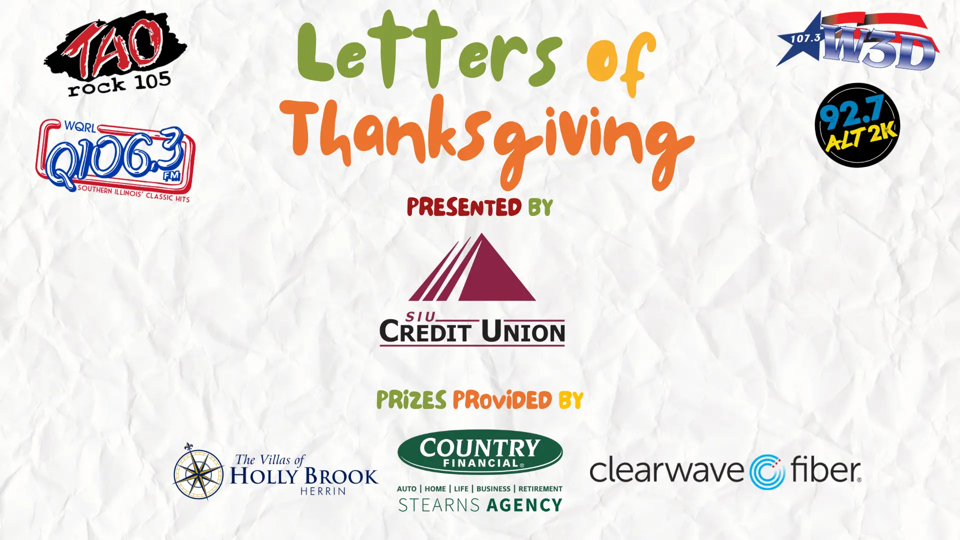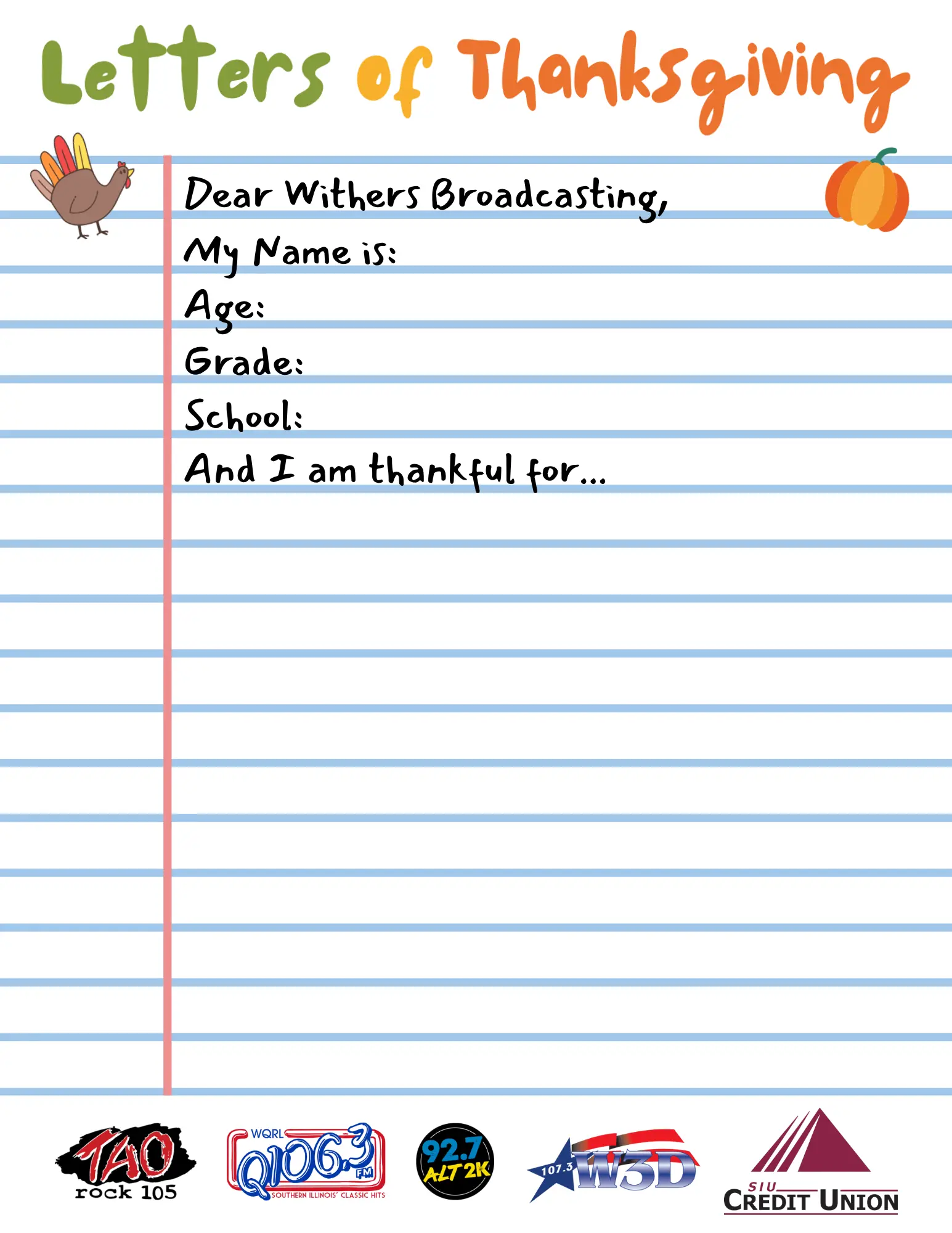 Thanksgiving is a time for reflection on the things we hold dear and what we are thankful for. Letters of Thanksgiving powered by SIU Credit Union gives local students a voice to share what they are most thankful for in their lives. Plus, a chance to win prizes AND a classroom party for the winning student’s class!